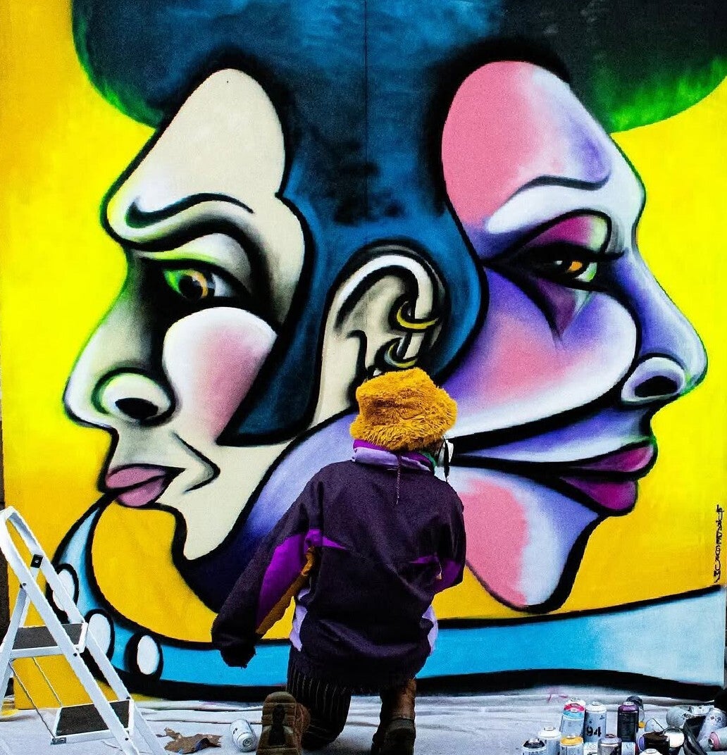 Not only is Laura Decorum incredible at freestyle paintings, whether it be using aerosol cans or a brush, but she is also brilliant at creating work that is bespoke for an audience. Her adaptability ensures the artwork perfectly complements the theme and atmosphere of your event.